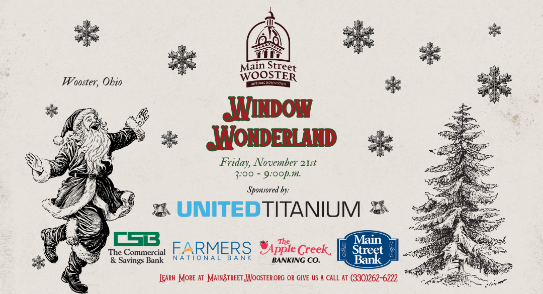 Enjoy the true kick-off to the holiday season in Historic Downtown Wooster! Live reindeer, horse-drawn carriage rides, crafts, free giveaways, Holiday tree lighting, window decorating competition and of course: Santa Claus descending off the Briggs & Starr Building.